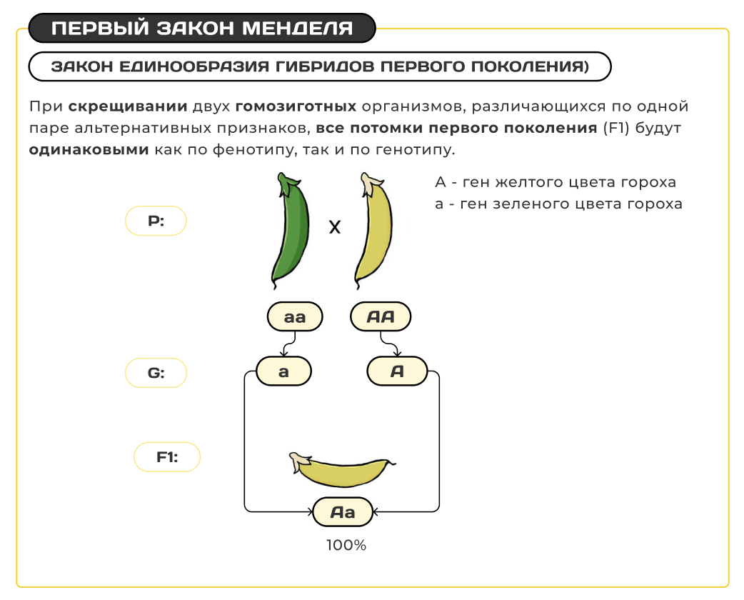 Закон единообразия гибридов первого поколения (1й закон Менделя)