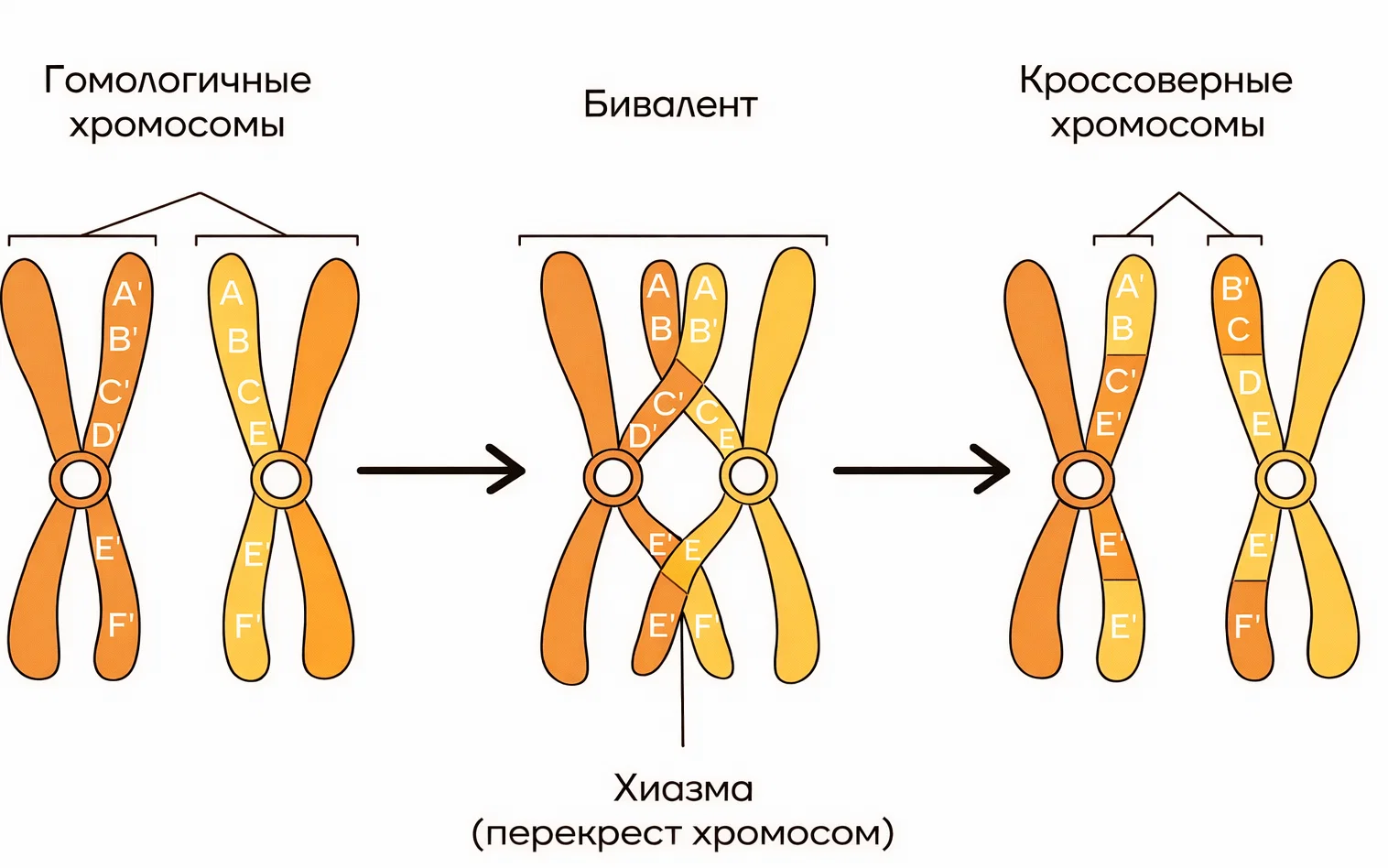 Кроссинговер — это обмен участками между гомологичными хромосомами в профазе I мейоза.